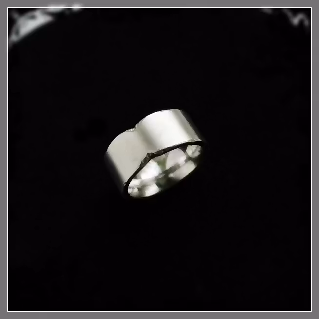 Denna silverring är stilren samtidigt som den utstrålar en modern framtoning med sina rena slitningar. Matterad till ytan.